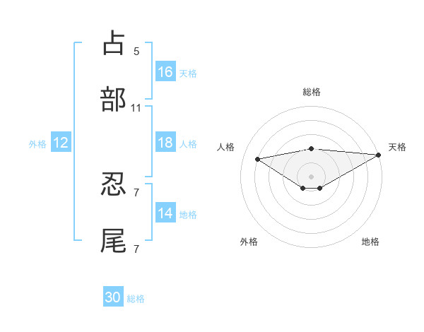 占部 忍尾さんを姓名の画数から五運を鑑定