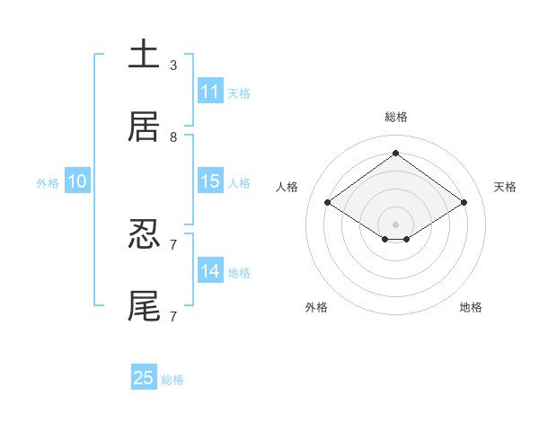 土居 忍尾さんの総格は25画の4点!