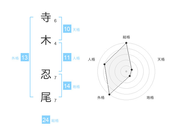 寺木 忍尾さんの総格は24画の5点!