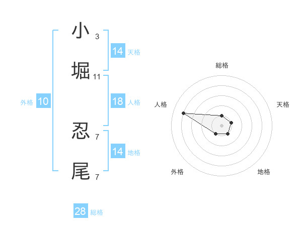 小堀 忍尾さんを姓名の画数から五運を鑑定