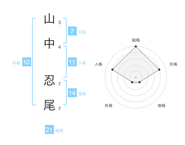 山中 忍尾さんを姓名の画数から五運を鑑定