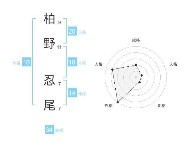 柏野 忍尾さんを姓名の画数から五運を鑑定