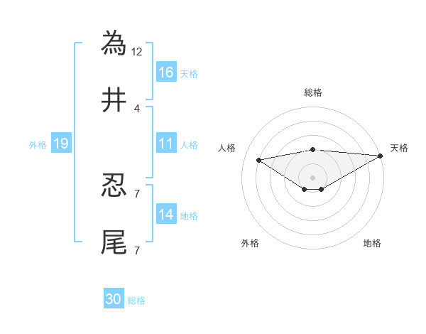 為井 忍尾さんの総格は30画の2点!