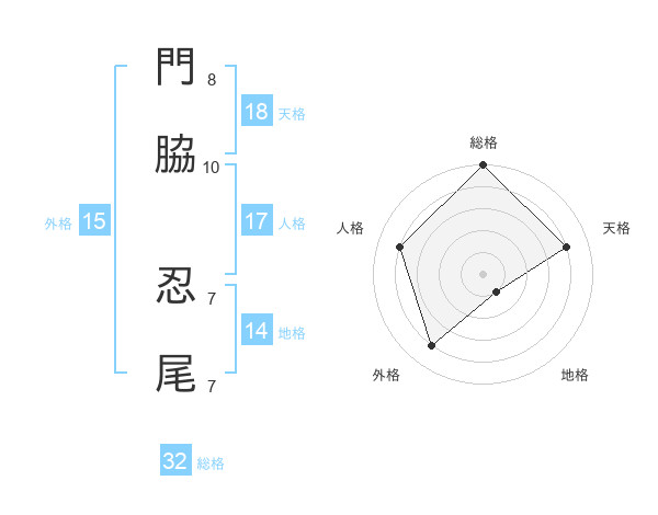 門脇 忍尾さんを姓名の画数から五運を鑑定