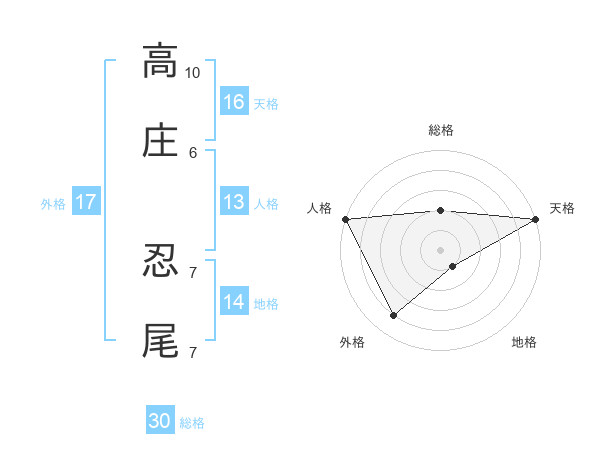 高庄 忍尾さんの総格は30画の2点!