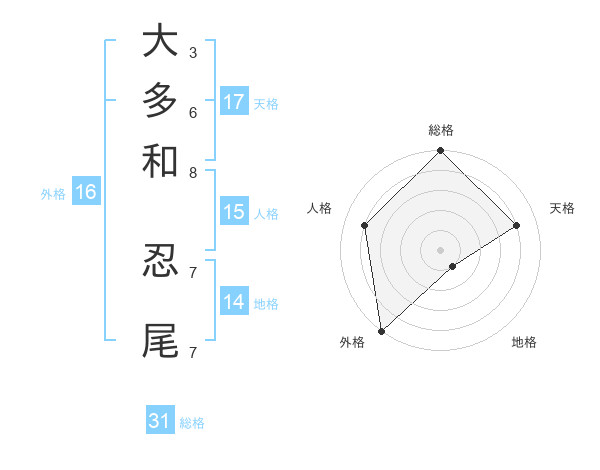 大多和 忍尾さんを姓名の画数から五運を鑑定