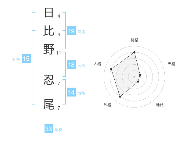 日比野 忍尾さんを姓名の画数から五運を鑑定