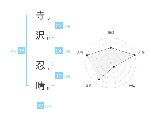 寺沢 忍晴さんを姓名の画数から五運を鑑定