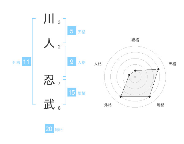 川人 忍武さんの天格は5画の4点!