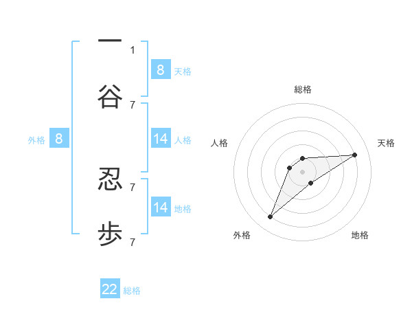 一谷 忍歩さんを姓名の画数から五運を鑑定