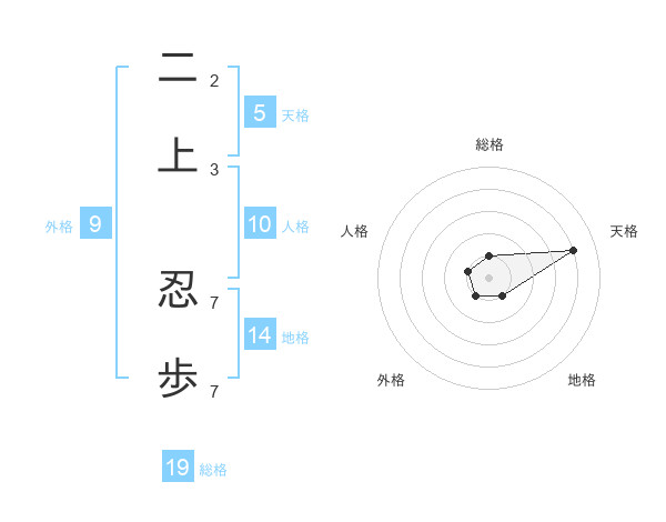 二上 忍歩さんを姓名の画数から五運を鑑定