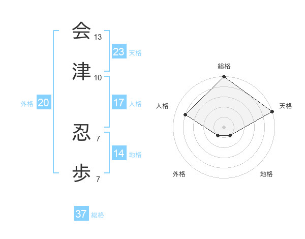 会津 忍歩さんを姓名の画数から五運を鑑定