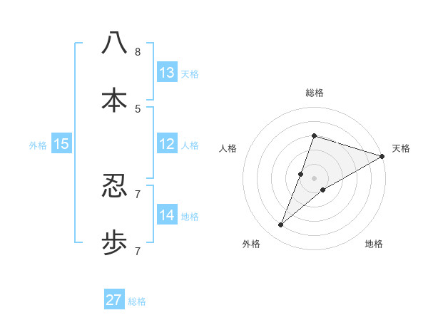 八本 忍歩さんを姓名の画数から五運を鑑定