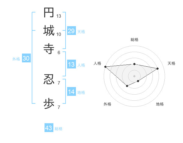 円城寺 忍歩さんを姓名の画数から五運を鑑定