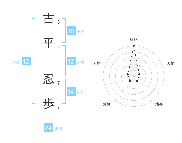 古平 忍歩さんの総格は24画の5点!