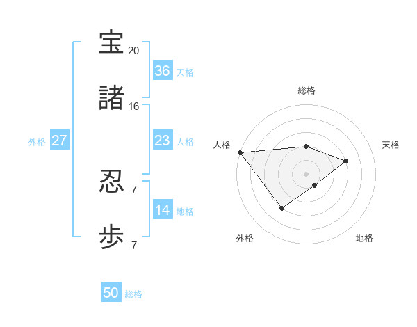 宝諸 忍歩さんを姓名の画数から五運を鑑定