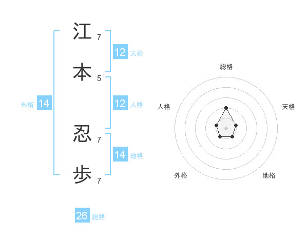 江本 忍歩さんを姓名の画数から五運を鑑定