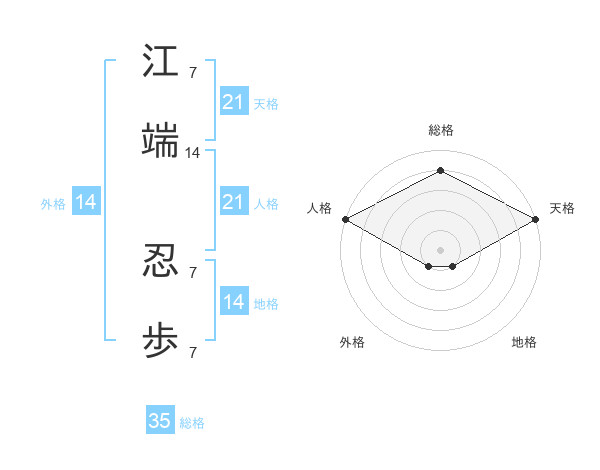 江端 忍歩さんの総格は35画の4点!