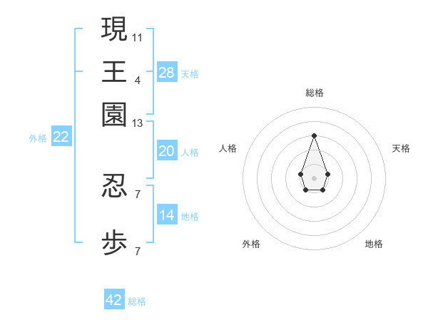 現王園 忍歩さんの総格は42画の3点!