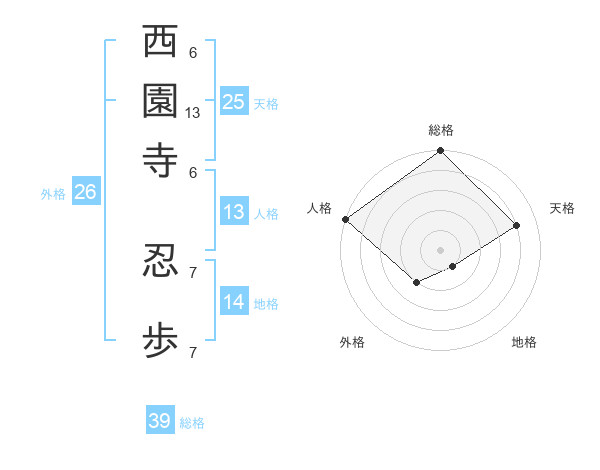 西園寺 忍歩さんの総格は39画の5点!