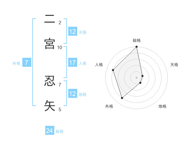 二宮 忍矢さんを姓名の画数から五運を鑑定