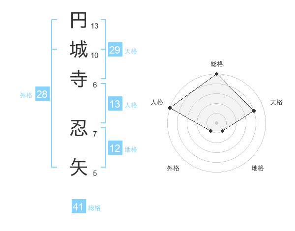 円城寺 忍矢さんの総格は41画の5点!