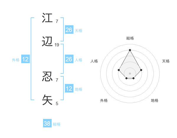 江辺 忍矢さんの総格は38画の4点!