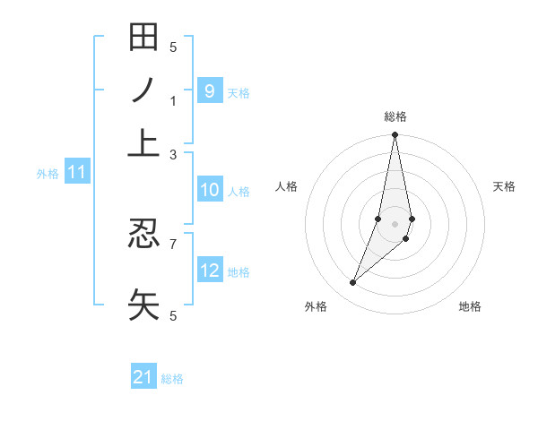田ノ上 忍矢さんを姓名の画数から五運を鑑定