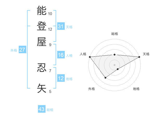 能登屋 忍矢さんを姓名の画数から五運を鑑定
