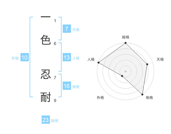 一色 忍耐さんを姓名の画数から五運を鑑定