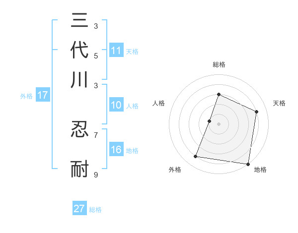 三代川 忍耐さんを姓名の画数から五運を鑑定