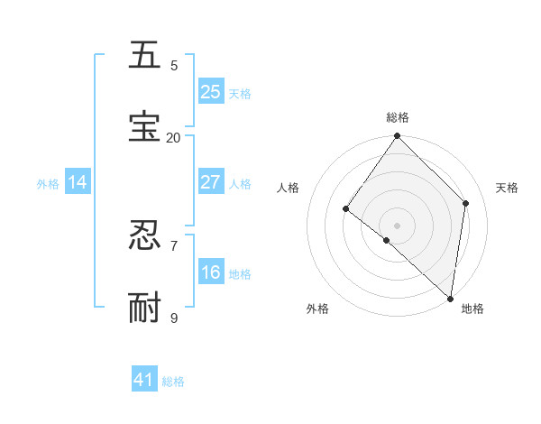 五宝 忍耐さんの総格は41画の5点!