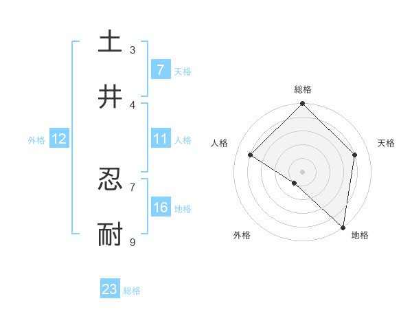 土井 忍耐さんの総格は23画の5点!