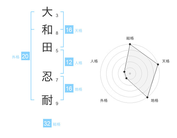 大和田 忍耐さんの天格は16画の5点!