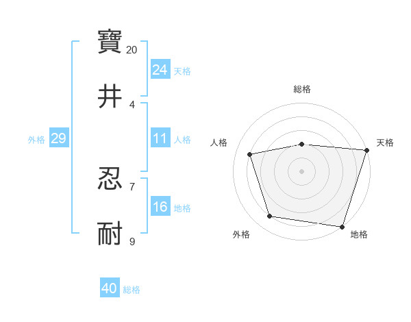 寶井 忍耐さんの天格は24画の5点!
