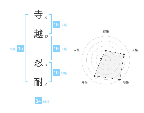 寺越 忍耐さんの天格は18画の4点!