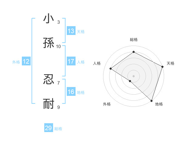 小孫 忍耐さんの総格は29画の4点!