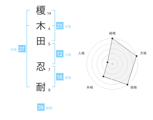 榎木田 忍耐さんを姓名の画数から五運を鑑定