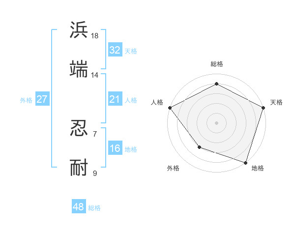 浜端 忍耐さんを姓名の画数から五運を鑑定