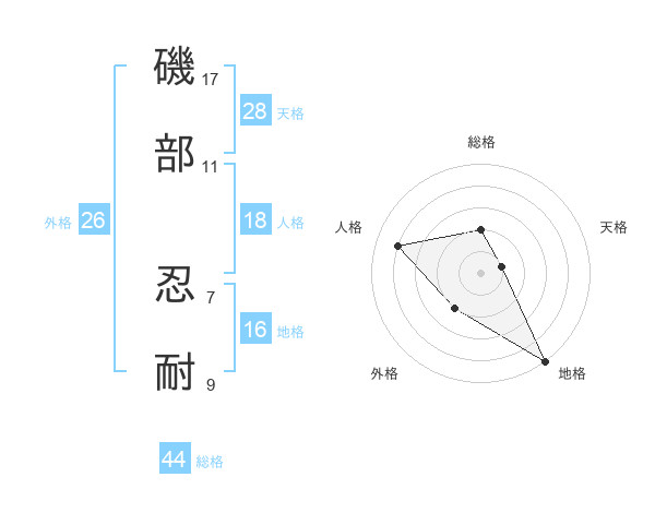 磯部 忍耐さんの総格は44画の2点!