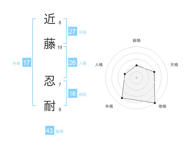 近藤 忍耐さんを姓名の画数から五運を鑑定