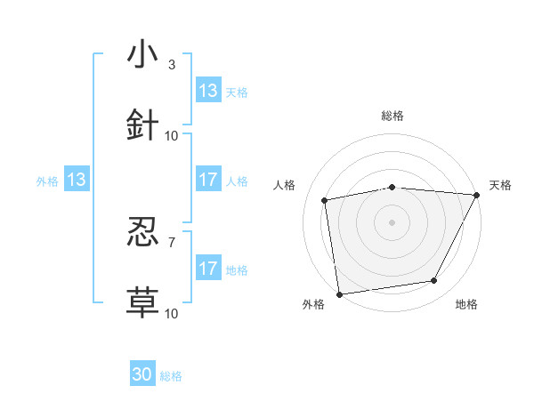 小針 忍草さんの天格は13画の5点!