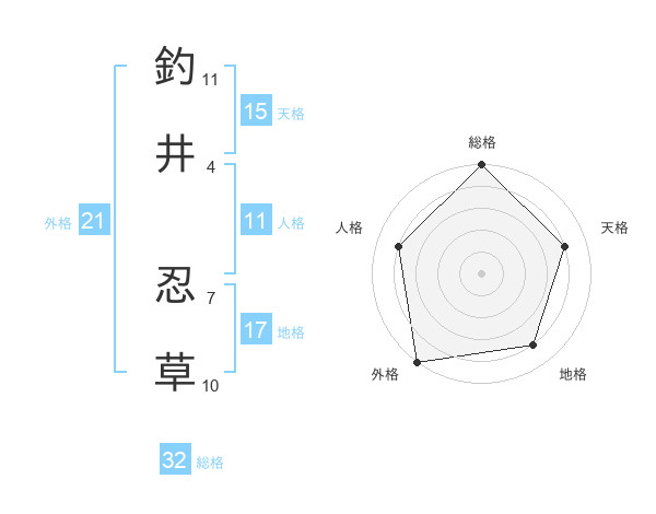 釣井 忍草さんを姓名の画数から五運を鑑定