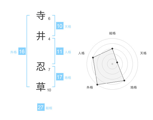 寺井 忍草さんの総格は27画の3点!