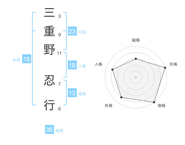 三重野 忍行さんを姓名の画数から五運を鑑定