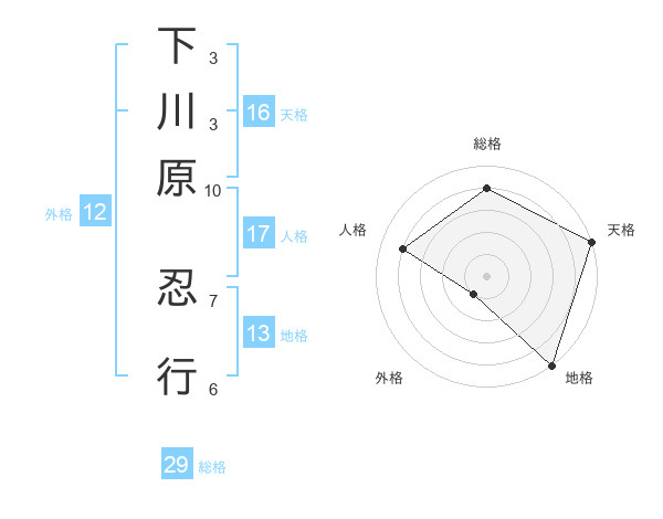 下川原 忍行さんを姓名の画数から五運を鑑定