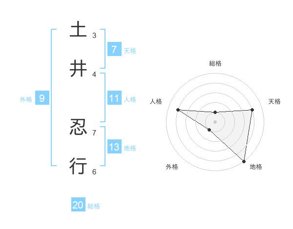 土井 忍行さんの総格は20画の1点!