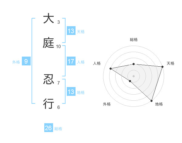 大庭 忍行さんの天格は13画の5点!