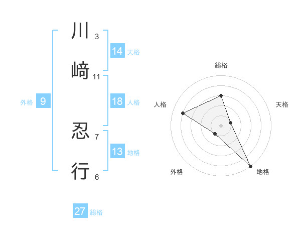 川﨑 忍行さんを姓名の画数から五運を鑑定