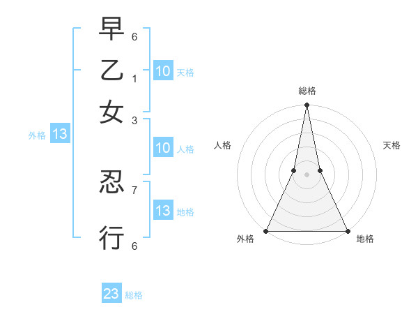 早乙女 忍行さんを姓名の画数から五運を鑑定